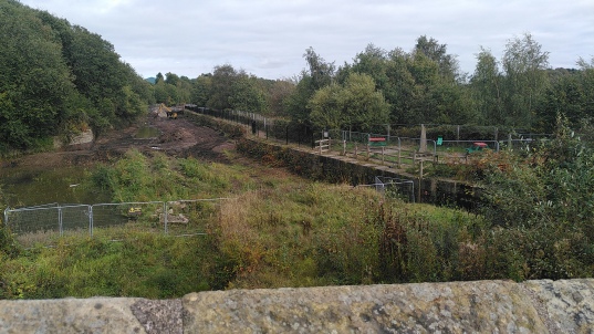 Vegetation has been cleared from both flights of locks and it is proposed to get water into those near the Meccano Bridge. Some work has been done on the brick walls near the bridge. The approach road has been resurfaced. It is also proposed to repair the breach near the end of the turning basin and restore navigation to Radcliffe.