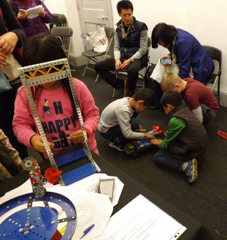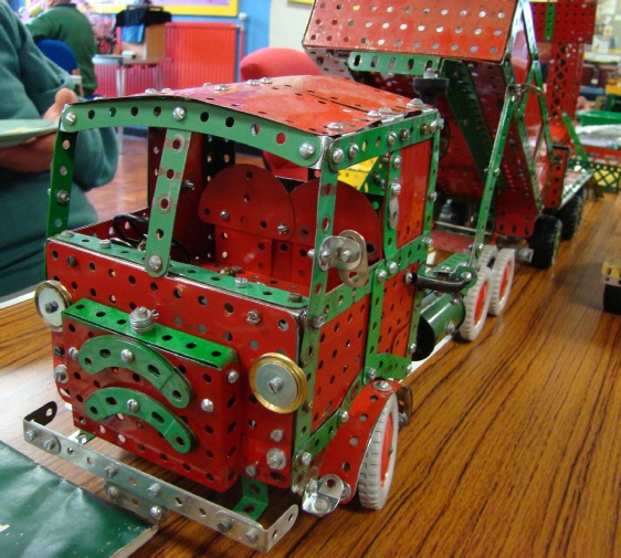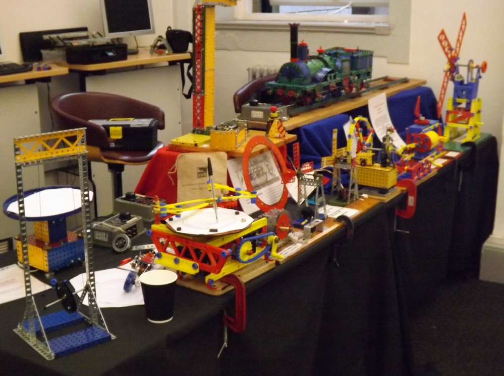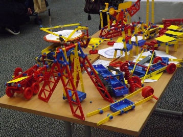 This event is held annually in the main library in Lancaster. On Saturday, we were in the Meeting Room but on Sunday we moved into the palatial main hall. We bought a few models for display, mostly for handle turning and button pressing as well as a large quantity of Plastic Meccano for model building. Numerous models were built, many innovative. Some are shown below.